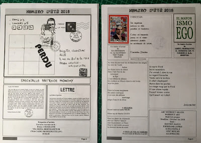 beautiful postcard from Remy, with his iconic collage style and specially nice he sent me one of his stamps of Giancarlo Da Lio and Tiziana Baracchi at the 100 Anniversary's DADA Parade Anniversary in Limoges(France) last year, to remember Tiziana.