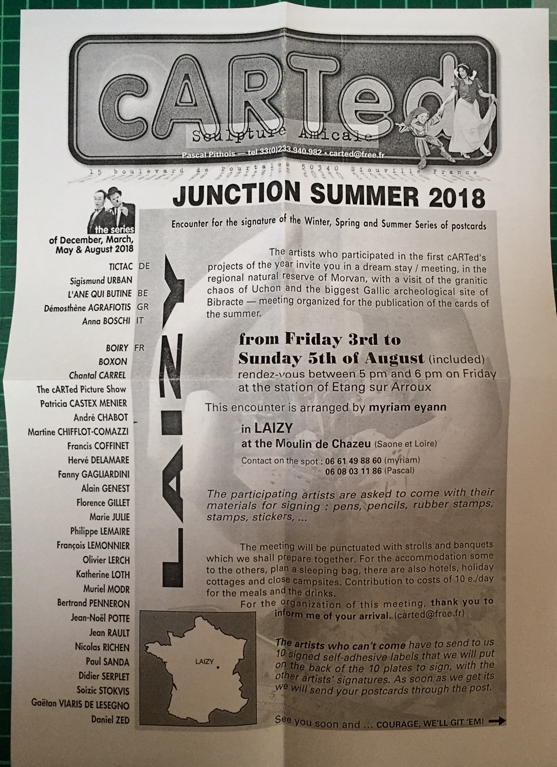 cARTed meetings for the publication of postcards of participant artists are always in interesting places, this one is in Laizy, in the region of the natural reserve of Morvan near Uchon and Bibracte, an archeological Gallic site.