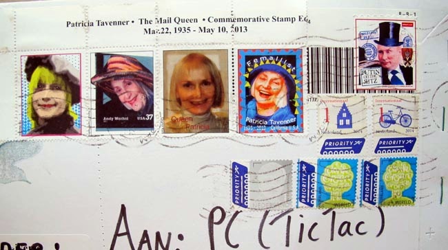 and beautiful stamps on the envelope commemorating Patricia Tavenner, The Mail Queen.